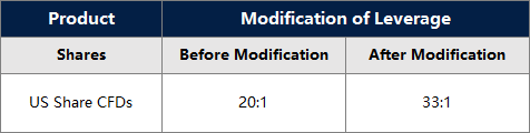 To provide the best trading experience possible, VT Markets will modify the available leverage for US share CFDs on 15 May 2023: