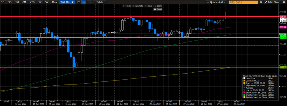 USD/JPY reached as much as 137, and was up 0.34% on Wednesday, gaining follow-through traction for the fourth consecutive day. The US dollar pick up a fresh bid tone following Jerome Powell’s restated bets for a more aggressive monetary policy.