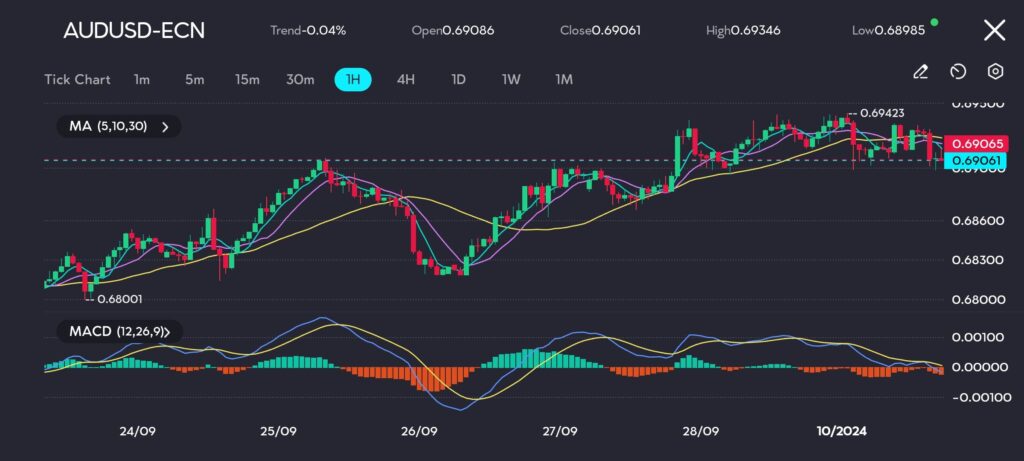 - The AUDUSD reached $0.6928, nearing multi-month highs, supported by positive domestic data and Chinese stimulus hopes.