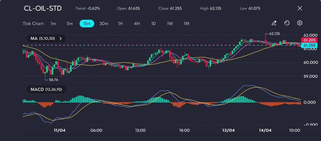 Picture: CL-OIL retraces to 61.255, testing key support levels after a minor pullback, as seen on the VT Markets app.