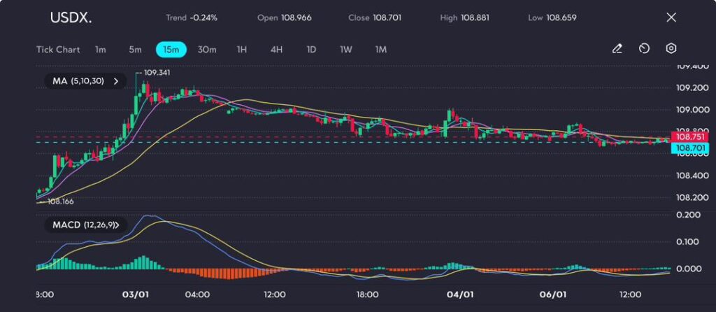 A break above 109.00 could signal further gains, while a slip below 108.65 may open the door for more bearish pressure.