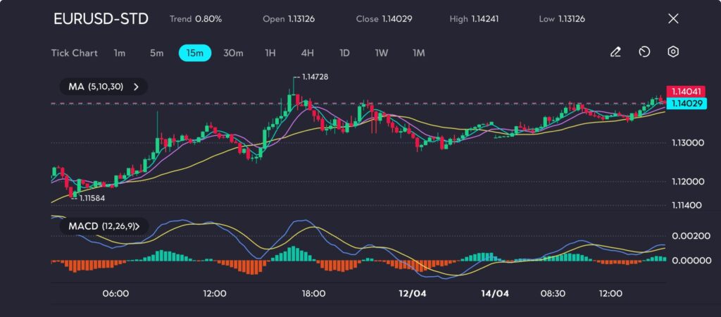 If the EURUSD maintains this upward trajectory, it could target new highs above the 1.14241 mark. However, further developments in the trade war could inject volatility into the currency pair, making it essential for traders to stay alert for any unexpected shifts in market sentiment.