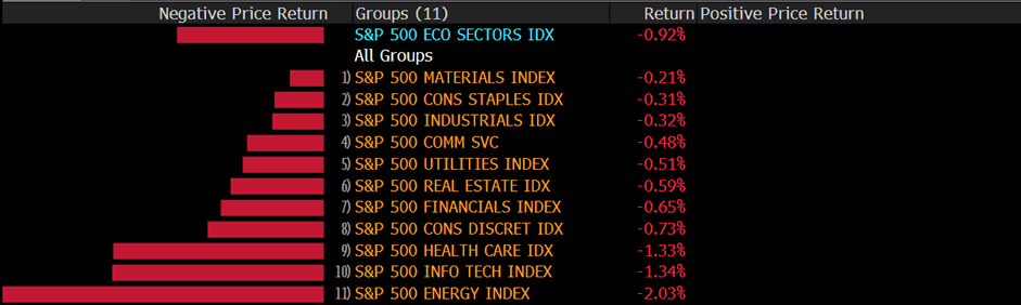 The benchmarks, S&P 500 and Dow Jones Industrial Average, dropped on Tuesday as the market is nervous about a global recession and a possible 75 bps rate hike in July by the Fed. The S&P 500 was down 0.9% daily and the Dow Jones Industrial Average declined with a 0.6% loss for the day. All of the eleven sectors stayed in negative territory as the energy and information technology sectors are the worst-performing among all groups, losing 2.03% and 1.34%, respectively. The Nasdaq 100 meanwhile declined the most with a 1.0% loss on Tuesday and the MSCI World index fell 0.8%.