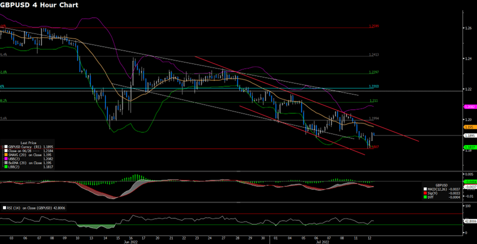 The GBP/USD bounced from a daily low of 1.1810 level to around 1.1900 on Tuesday as the US dollar became mild during the Asia session. The Bank of England governor said there are alternatives to 25bps rate hikes in the table, adding he expects inflation to fall sharply next year. Meanwhile, EUR/USD also rebounded from a 20-year low 1.0000 level during the Asia session to close at around 1.005 at the end of the day, the fears of a slowdown in economic growth and the aggregation of Fed accentuate the importance of the oncoming inflation report.