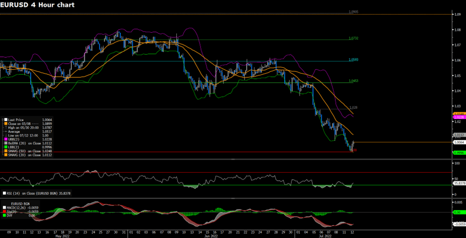 US stock declined on Tuesday amid fears that aggressive rate hikes will drag the economy into a recession ahead of Wednesday’s critical inflation report. Slowing economic growth and soaring inflation continued to weigh on investors’ mood across financial markets, as economists said that inflation kept heating up in June and might force the Federal Reserve to gear for another big rate hike. Meanwhile, the escalating fears about a global recession made market participants fly to the safe-haven greenback for safety and exerted bearish pressure on equity markets. In the Eurozone, macroeconomic data showed that the Economic Sentiment plunged to -53.8 in July, much worse than the previous -28 and missed expectations. The energy crisis in the area, supply chain disruptions, and the ECB’s intentions to hike interest rates both dragged the Euro lower.
