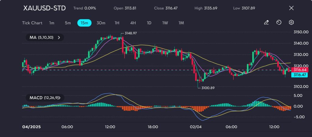 Gold (XAUUSD) prices eased slightly on Wednesday morning, trading near $3,116 per ounce, as the deadline for President Donald Trump’s reciprocal tariffs approached. Market participants are anxiously awaiting the president’s announcement on tariffs, which could have significant implications for global trade.