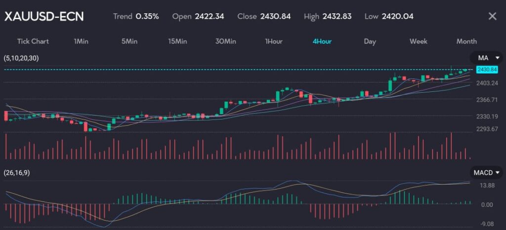 See: Gold prices trading at 2430.84 as seen on the VT Markets app.