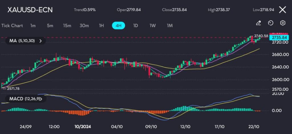 See: Gold (XAUUSD) continues its bullish trend, closing at $2,735.84, with upward momentum on the VT Markets app.
