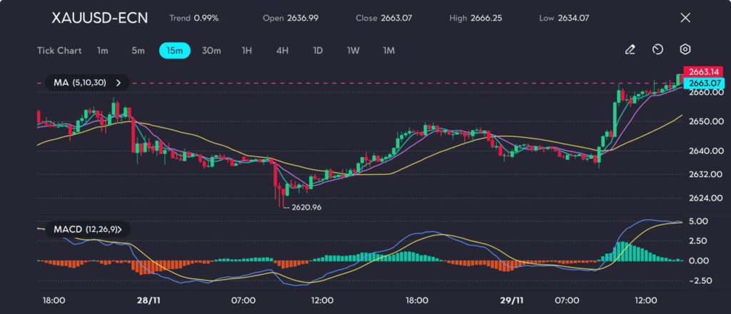 Picture: The day’s high touched $2,666.25, pushing the precious metal firmly above both the 100-hour and 200-hour moving averages, as seen on the VT Markets app.