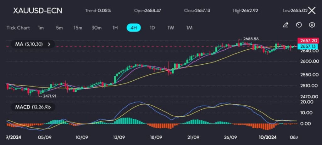 See: Gold prices remain steady, trading at 2657.20 as seen on the VT Markets app.