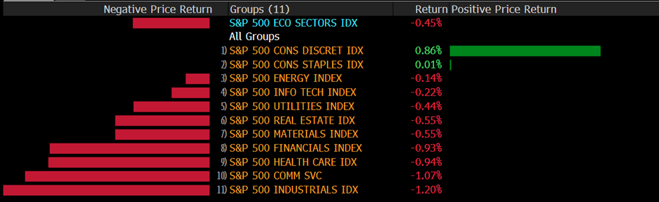 The benchmarks, S&P 500 and Nasdaq 100 both dropped on Wednesday as the market expects the US Federal Reserve will likely add another 75 bps this month after the central bank has hiked rates multiple times. The S&P 500 was down 0.5% daily and the Nasdaq 100 declined with a 0.1% loss for the day. Nine out of eleven sectors stayed in negative territory as the industrials and the communication services sectors are the worst performings among all groups, losing 1.20% and 1.07%, respectively. The Dow Jones Industrial Average meanwhile declined the most with a 0.7% loss on Wednesday and the MSCI World index fell 0.4%.