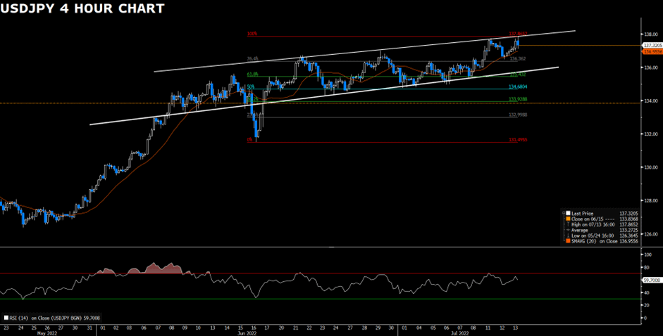 US stock continued its slide on Wednesday amid the hot US inflation report, which weighed on financial markets and boosted speculation that the US Federal Reserve will tighten its monetary policy more aggressively. The US Consumer Price Index soared by 9.1% YoY in June, which was much worse than the 8.8% expected and also much higher than May’s 8.6% print. The biggest surge in US consumer prices since 1981 indicated escalating inflation pressures and the Fed will keep raising rates rapidly soon. On top of that, Atlanta Fed President Raphael Bostic said that everything is in play to combat price pressures, which also acted as a headwind for market sentiment. In the Eurozone, the European Central Bank will start with its modest tightening in July by hiking 25 bps. Investors might keep their eyes on the interest rate differentials between the Fed and the ECB.