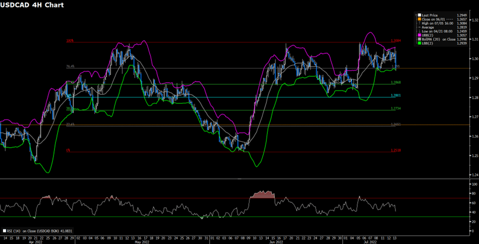 From the technical aspect, the intraday bias turns bearish on the four-hour chart as the bearish double-top pattern has been form. And the downside is currently contesting the support level of 1.295; the breakout of 1.295 would bring a deeper fall back to the next support of 1.2868. To the upside, suitably holding above current support should favour the USD; climbing above the midline of Bollinger Band could lead the USD back in control and reclaim its upside momentum.