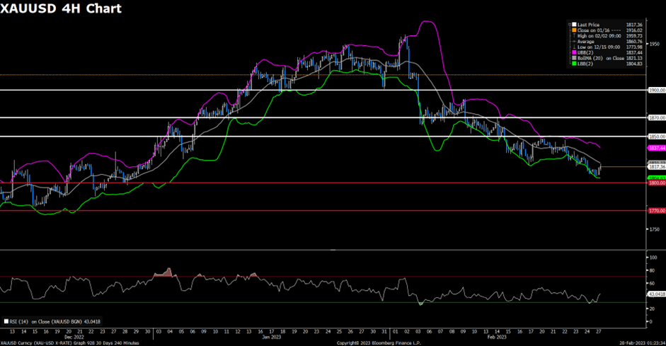 The XAUUSD regain positive strength and rebound to above the $1815 mark at the moment of writing, as the US dollar lost its upside momentum since the European trading session. This week, a bunch of mid-tier US macroeconomic releases could help shape how much more room gold price can have to the downside ahead of the crucial March 22 Federal Reserve (Fed) meeting. The US Durable Goods Orders data released earlier today came out mixed. The headline figure was worse than expected, showing a bigger decline (-4.5%) than what the consensus had forecast (-4.0%). Gold price reacted modest-but-positively to this release as the US Dollar witnessed heavy selling transactions.