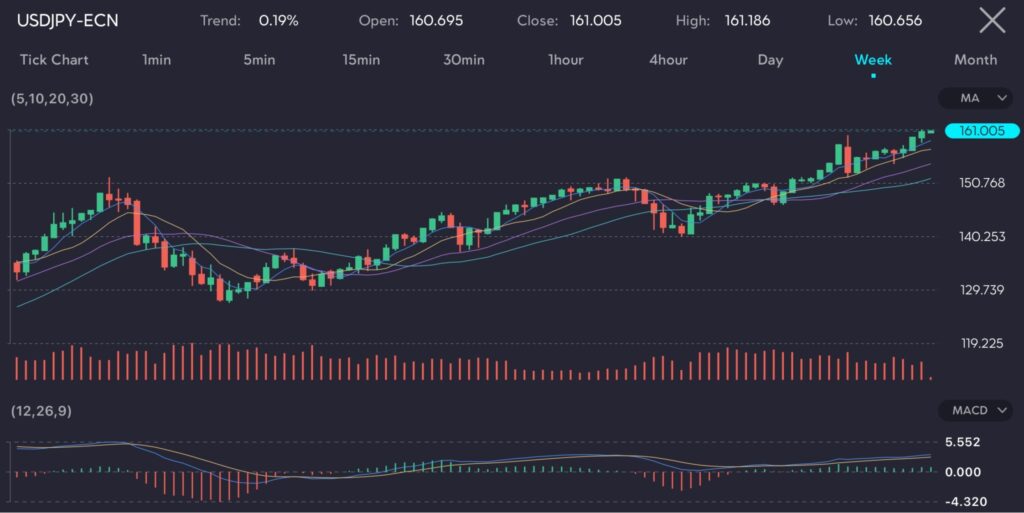 The Japanese yen has continued its downward spiral, hitting levels not seen since 1986, with the USDJPY currency pair breaching the ¥161.00 mark and peaking at ¥161.30. This trend has persisted despite recent attempts at intervention, raising concerns among Japanese officials and traders alike.