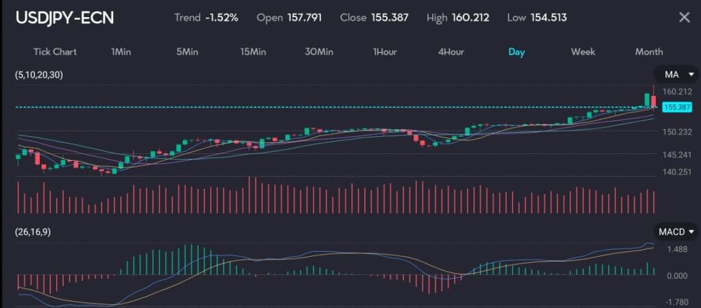 In a dramatic turn of events in Asian markets on Monday, the Japanese yen recorded a surge against the dollar, appreciating by 5 yen, with traders attributing this sharp recovery to heavy dollar-selling by Japanese banks. This intervention seemed to be a response to the yen touching fresh 34-year lows earlier in the day.