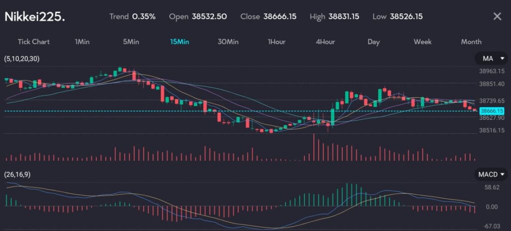 Japan’s Nikkei share average snapped a three-day winning streak to close lower on Friday, influenced by Wall Street’s tepid overnight performance and uncertainties surrounding the Bank of Japan’s (BOJ) policy trajectory. The Nikkei slipped 0.34% to finish at 38,787.38, although it still gained 1.43% for the week.
