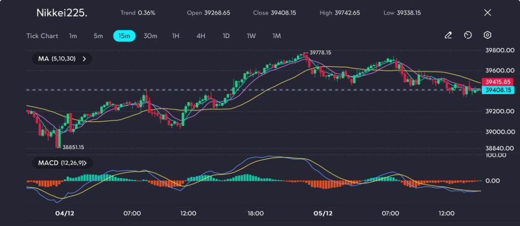 From the chart, we’re seeing a neutral to bearish short-term phase, consolidating between 39,200 support and 39,700 resistance. Price action traders should watch for a break of either of these levels for a clearer direction.