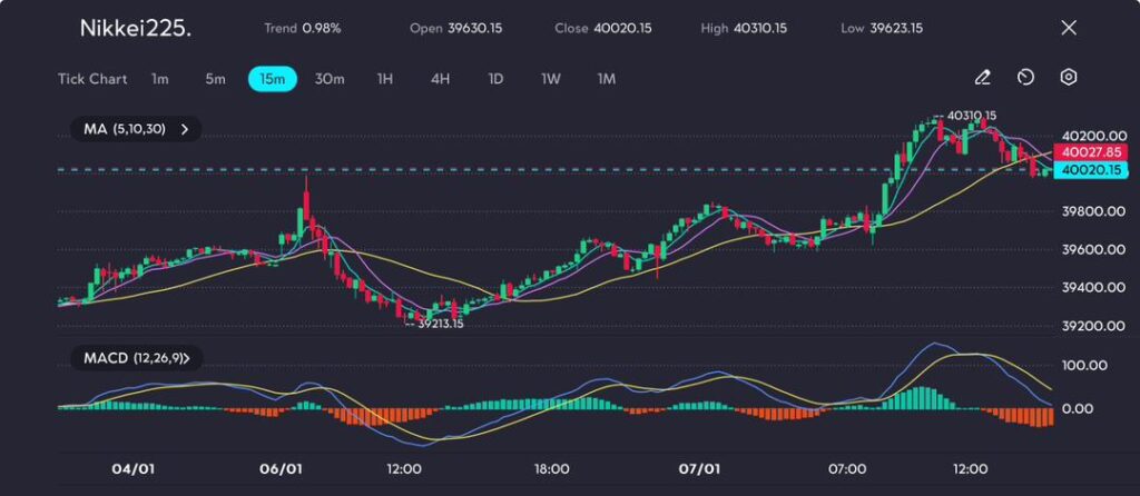 - The Nikkei225 closed at 40,020.15, driven by strong electronics and semiconductor shares performances.
