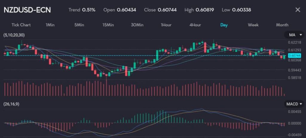 See: Kiwi on the rise, trading at 0.60744 as seen on the VT Markets app.