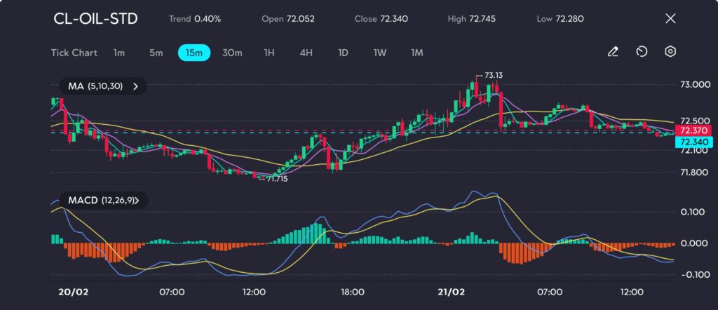 A break above $73.13 could reinforce bullish sentiment, while sustained pressure below $72.000 may invite sellers.