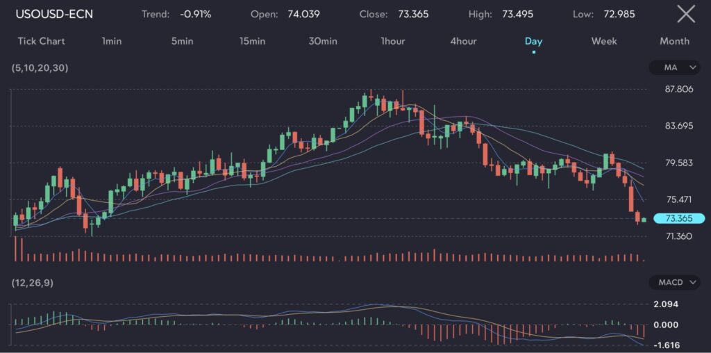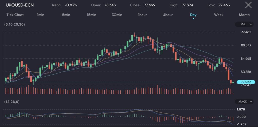 The images above show the decline in oil prices, as observed on the VT Markets app.