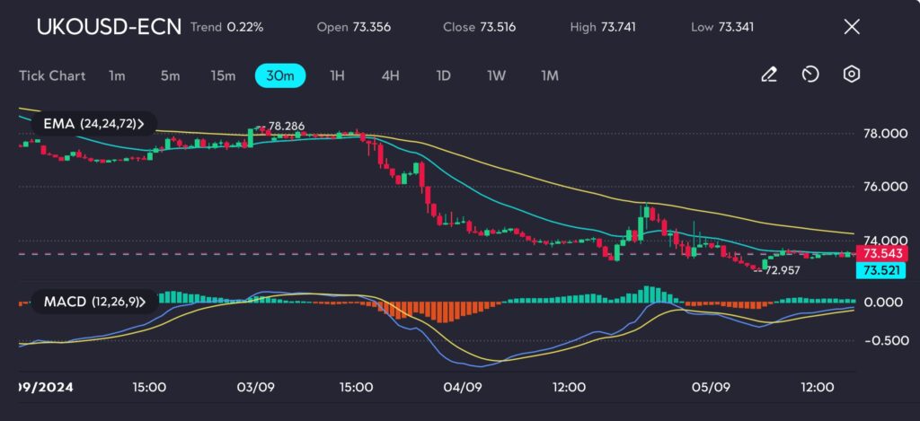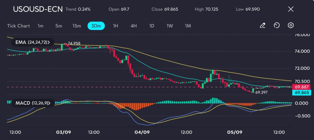 Picture: Oil prices laying flat after an overnight sell-off, as observed on the VT Markets app.