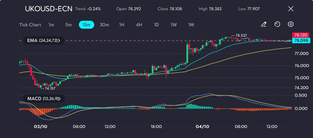 Oil prices continued to rise during early Asian trading on Friday, with the Brent crude oil (Symbol: UKOUSD) reaching $77.71 per barrel and the U.S. West Texas Intermediate (WTI) (Symbol: USOUSD) climbing to $73.79.