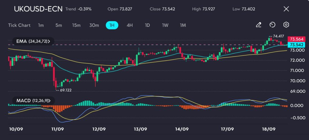 Oil prices held steady after two days of gains, as markets anticipated interest rate cuts by the U.S. Federal Reserve while assessing the ongoing geopolitical risks in the Middle East. Brent crude oil (Symbol: UKOUSD) dropped slightly to $73.542 a barrel, while U.S. WTI crude oil (Symbol: USOUSD) slid to $70.796 a barrel.