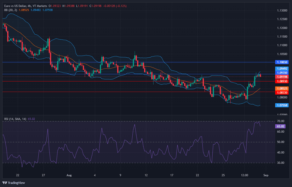 The EUR/USD pair reached two-week highs at 1.0947 but retraced slightly, maintaining its position above 1.0900. The prevailing upward bias is fueled by US Dollar corrections due to recent disappointing US data, while Eurozone inflation rates suggest potential European Central Bank tightening. Despite the data undershooting expectations, upcoming US economic figures remain pivotal, including the Core Personal Consumption Expenditure Price Index and Jobless Claims on Thursday, followed by Friday’s Nonfarm Payrolls report. The US fundamentals’ relative strength compared to the Eurozone may cap further upside potential in the EUR/USD pair.