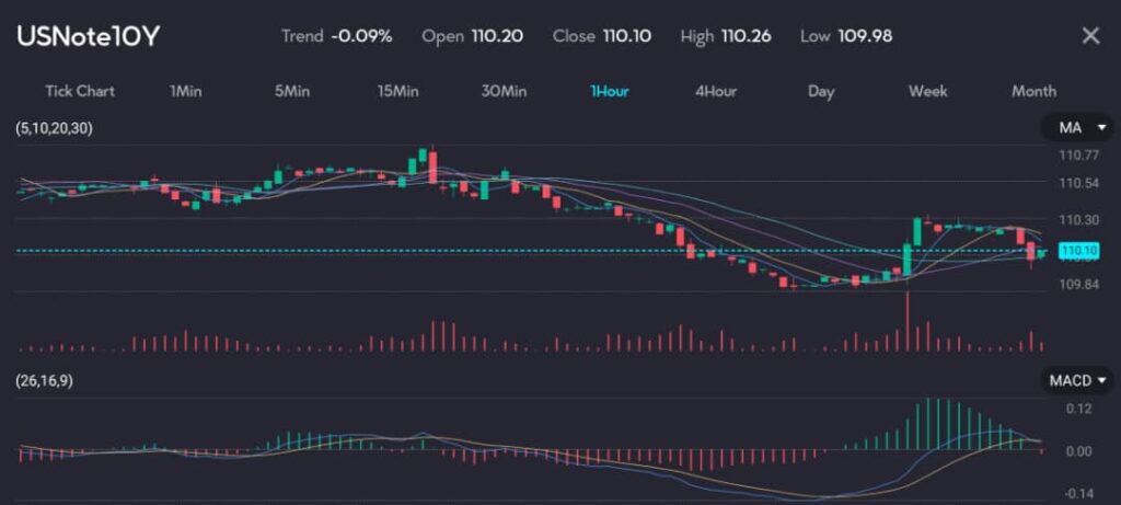 Picture: 10-year Treasury yields slip as seen on the VT Markets app.