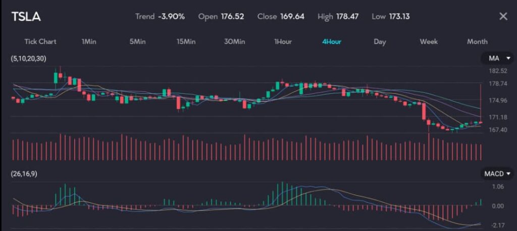 Picture: Tesla in the slumps as seen on the VT Markets app.