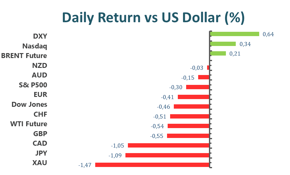 Gold tumbled with a 1.48% loss for the day after dropping to a daily low below the $1700 mark in the early US trading session, as the rising US dollar and hawkish sentiment surrounding the Fed continued to drag the precious metal lower. Meanwhile, WTI oil regained upside traction and climbed back to the $96 area during the second half of the day.