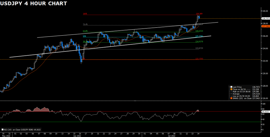USDJPY reaches as high as the 139.00 mark, the highest level in 23 years. The currency pair is tracking the renewed upsurge as the expectation of a 100 basis points Fed interest rate hike later this month.