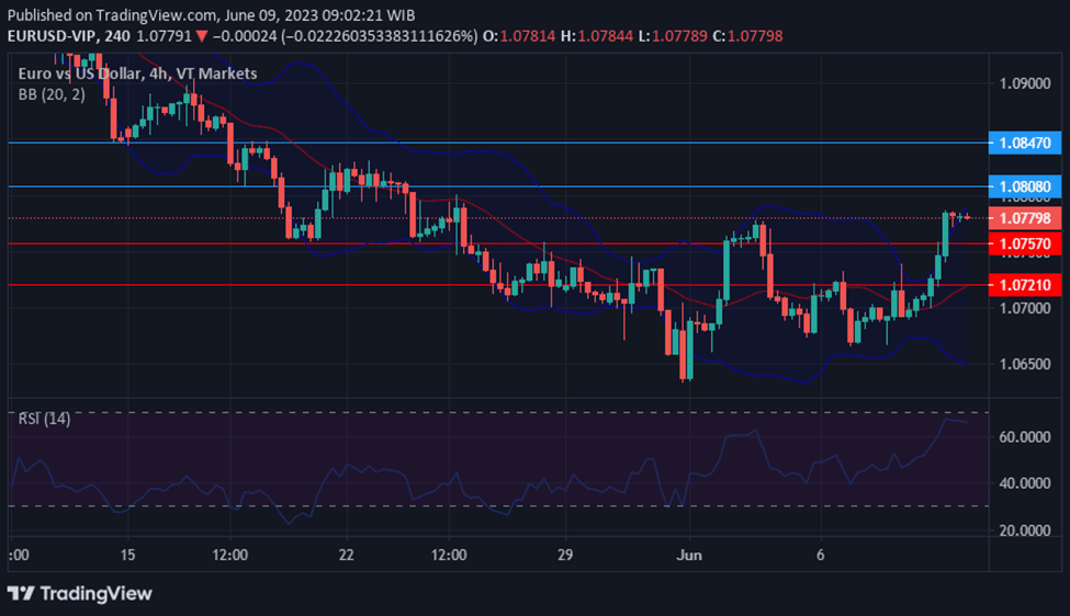The EUR/USD currency pair experienced a notable upswing on Thursday, driven by a declining US Dollar and improved risk appetite. The Greenback weakened across the board following lackluster employment data from the US, which softened expectations ahead of the upcoming Federal Open Market Committee (FOMC) meeting. Although Euro area Q1 GDP saw downward revisions, it did not have a significant impact on the Euro’s performance. Despite mixed growth figures among European countries, the European Central Bank (ECB) meeting next week is still anticipated to include a 25 basis points rate hike. The rally in EUR/USD was further supported by technical factors, while the negative employment numbers in the US contributed to easing hawkish expectations from the Federal Reserve. The release of the May Consumer Price Index (CPI) on Tuesday will be a crucial report to watch before the FOMC decision. As market sentiment favors riskier assets, the US Dollar is expected to remain weak, potentially leading to further losses. However, a deterioration in sentiment could limit upward movements and facilitate a sharp correction in the currency pair.