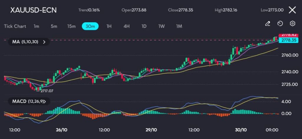 See also: Gold prices steadily climbed, reaching a high of 2782.16, with the MACD showing bullish momentum as moving averages trend upward on the VT Markets app.