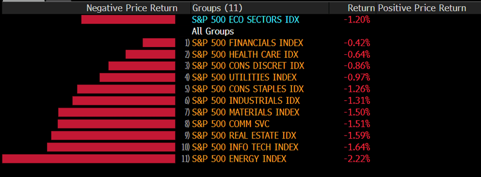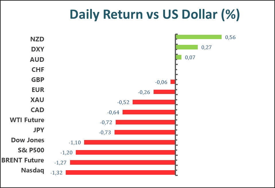 The benchmarks, the S&P500 dropped 1.2% for the day, to the lowest level in more than a month. All eleven sectors stayed in the negative territory, especially the Energy sector fell dramatically with 2.22% daily losses after the several-day surge. The tech-heavy Nasdaq 100 further declined by 1.3% daily, and the Dow Jones Industrial Average slid 1.10% on Wednesday.