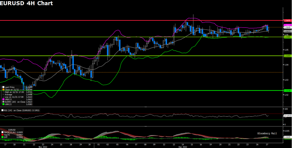 EURUSD edged lower throughout Wednesday’s trading and could not extend the pair’s three-day winning streak. The Euro-Dollar pair witnessed large volatility at the start of the American trading session as the Dollar dipped before starting an impressive rally that altered the course of EURUSD. The renewed Dollar strength comes after U.S. equities continue to sell off as the year comes to a close. Market participants are looking for safety as both equities and bonds continue to lose ground since trading began after the holidays. The benchmark U.S. 10-year treasury yield is now trading above the 3.87% mark, while the 2-year treasury yield was last seen trading at 4.357%. Yield curve inversion, often seen during late-cycle economies, will continue to be the norm as global economies head into a grim 2023. The nature of late-cycle economies could favour the U.S. Greenback in 2023 as global market participants look to protect asset valuations.