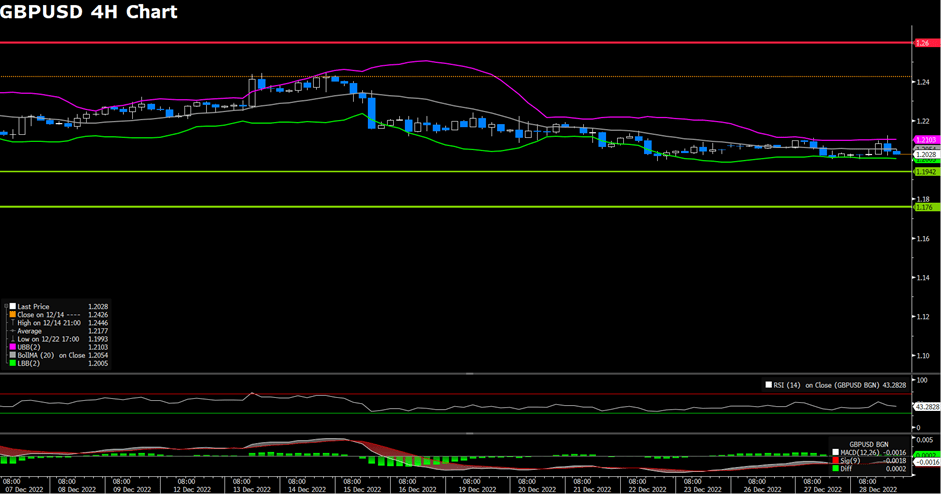 The GBPUSD has little change lower for the day, as the strong US Dollar is across the board. The cables dropped hugely during the early American trading session as the US administration announced mandatory Covid tests for travellers from China. In the meantime, EURUSD tumbled by almost 0.36% undermining market risk sentiment. The pair ended the day with 0.26% daily losses.