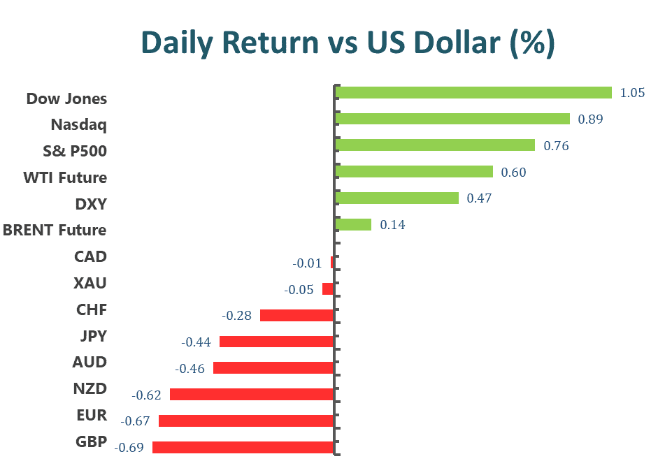 Gold retreated slightly with a 0.05% loss for the day after halting its recent surge and falling from the weekly high above the $1842 level during the US trading session, as US Treasury bond yields gathered strength and exerted bearish pressure on the yellow metal. Meanwhile, WTI Oil climbed higher with a 0.60% daily gain.
