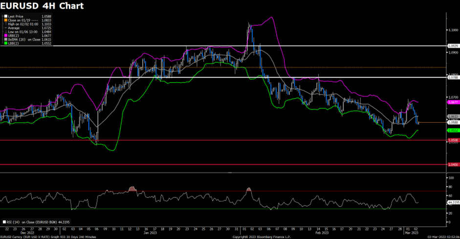 On Thursday, the EURUSD faced bearish pressure and dropped below the 1.0600 level in the early American trading session. This was due to the Unit Labor Costs in the US increasing at a more robust pace than expected in Q4, causing the US Dollar to gain more strength. While the US Federal Reserve and European Central Bank officials maintained their hawkish rhetoric, ECB President Christine Lagarde noted in a TV interview that bringing inflation down will take time. She repeated that the possibility of a 50 basis points rate hike this month is still on the table since inflation remains high. However, the Eurozone Harmonised Index of Consumer Prices (HICP) rose 8.5% YoY in February compared to January’s 8.6%, missing the market’s expectation of 8.2%. Additionally, the core annual reading printed at 5.6%, higher than the previous 5.3%, and above the market expectations.