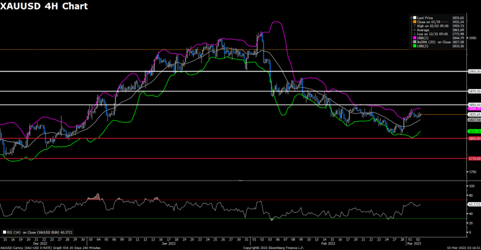 On Thursday, XAUUSD declined as the US Dollar gained momentum due to concerning news. Financial markets are preoccupied with worries about inflation and how central banks will react to persistent price pressures. In February, the Eurozone Harmonised Index of Consumer Prices (HICP) rose 8.5% YoY, a slight improvement from January’s 8.6%. However, it missed market expectations of 8.2%. Furthermore, the core annual reading came in at 5.6%, higher than both the previous and expected 5.3%. These troubling figures align with ECB President Lagarde’s statement that inflation’s decline is still unstable and remains too high. Meanwhile, the US Fed is also delivering hawkish messages, suggesting that the central bank may raise rates by more than 25 bps in upcoming meetings.