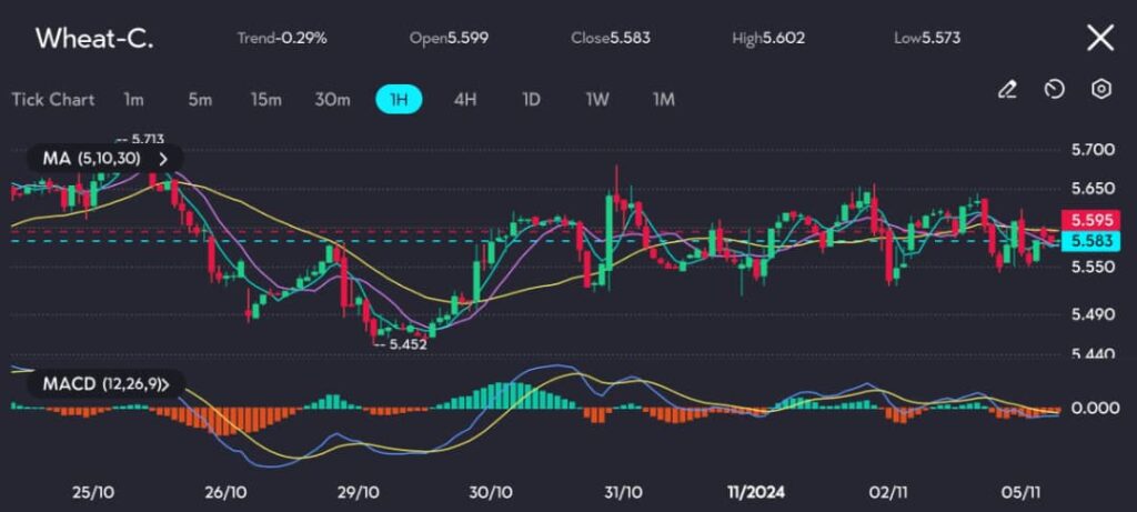 See: Wheat prices are consolidating in a narrow range between 5.452 and 5.713, showing limited momentum on the VT Markets app.