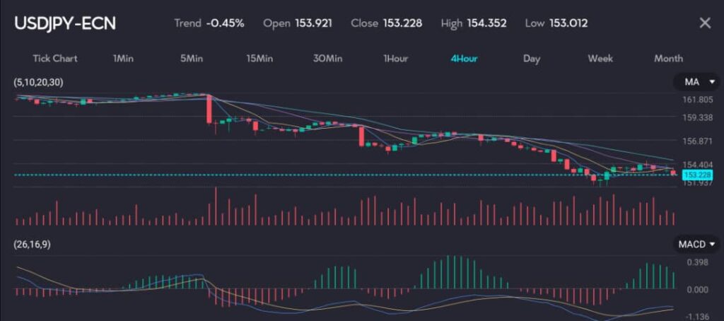 On Monday, the yen ticked lower, easing to 154.24 yen against the dollar early in the Asian trading day, a 0.29% rise for the dollar after the yen’s recent surge to 151.945, its strongest in 12 weeks. This shift comes after the yen’s remarkable performance last week, where it gained 2.36% against the dollar, marking its best week since late April.
