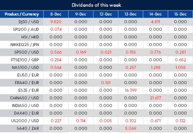 Please note that the dividends of the following products will be adjusted accordingly. Index dividends will be executed separately through a balance statement directly to your trading account, and the comment will be in the following format “Div & Product Name & Net Volume ”.