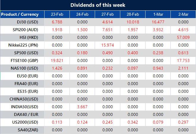 Please note that the dividends of the following products will be adjusted accordingly. Index dividends will be executed separately through a balance statement directly to your trading account, and the comment will be in the following format “Div & Product Name & Net Volume ”.