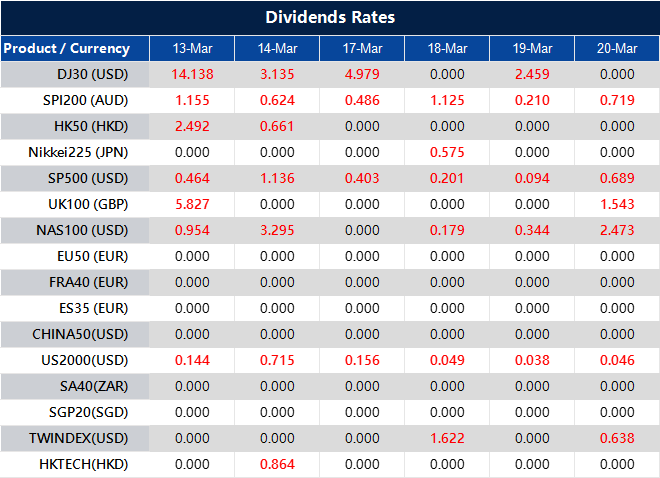 Please note that the dividends of the following products will be adjusted accordingly. Index dividends will be executed separately through a balance statement directly to your trading account, and the comment will be in the following format “Div & Product Name & Net Volume”.