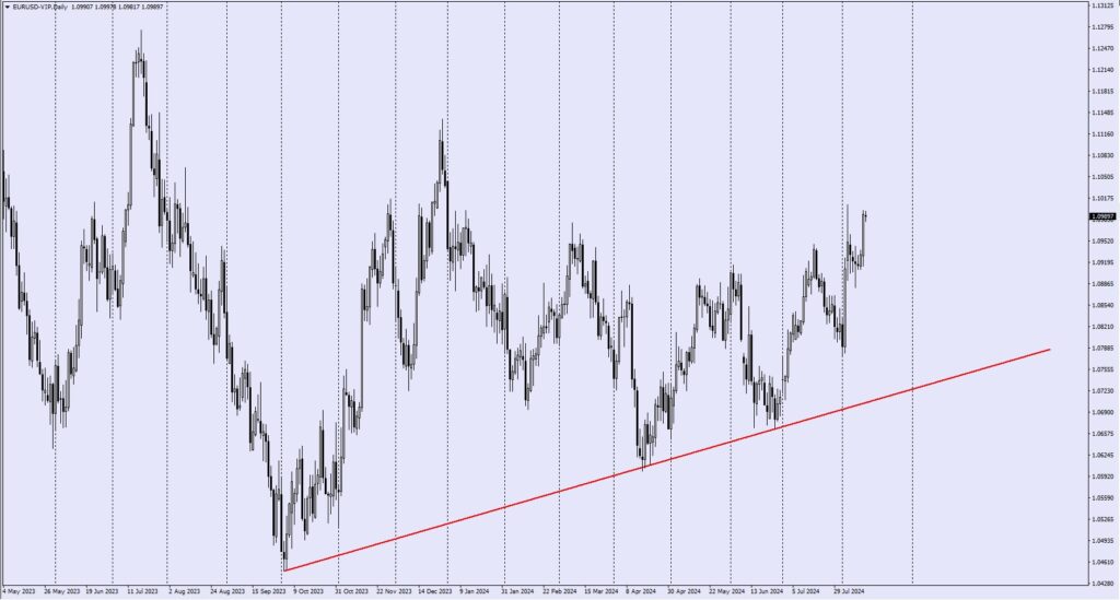Trendlines. These are angled or horizontal lines highlighting support and resistance in a chart. If you’re in an uptrend, there are higher highs and higher lows, while in a downtrend, there are lower lows and lower highs. You need to connect those highs and lows during a trend and extend that line to the right of the chart to determine where the price may reach support or resistance at some point. Trendlines are very important because they help you decide when to buy or sell.