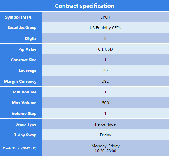 For providing customers with a wealth of trading options, VT Markets will launch new US Share products Spotify (SPOT) on November 23, 2020 as shown in the table below.