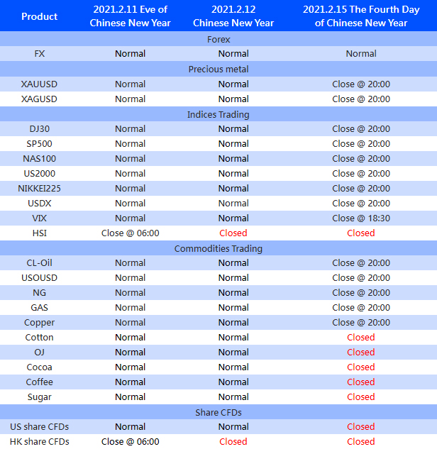 Please note change of the following some products due to the Eve of Chinese New Year,Chinese New Year,The Fourth Day of Chinese New Year.
